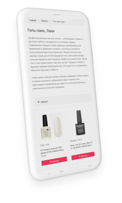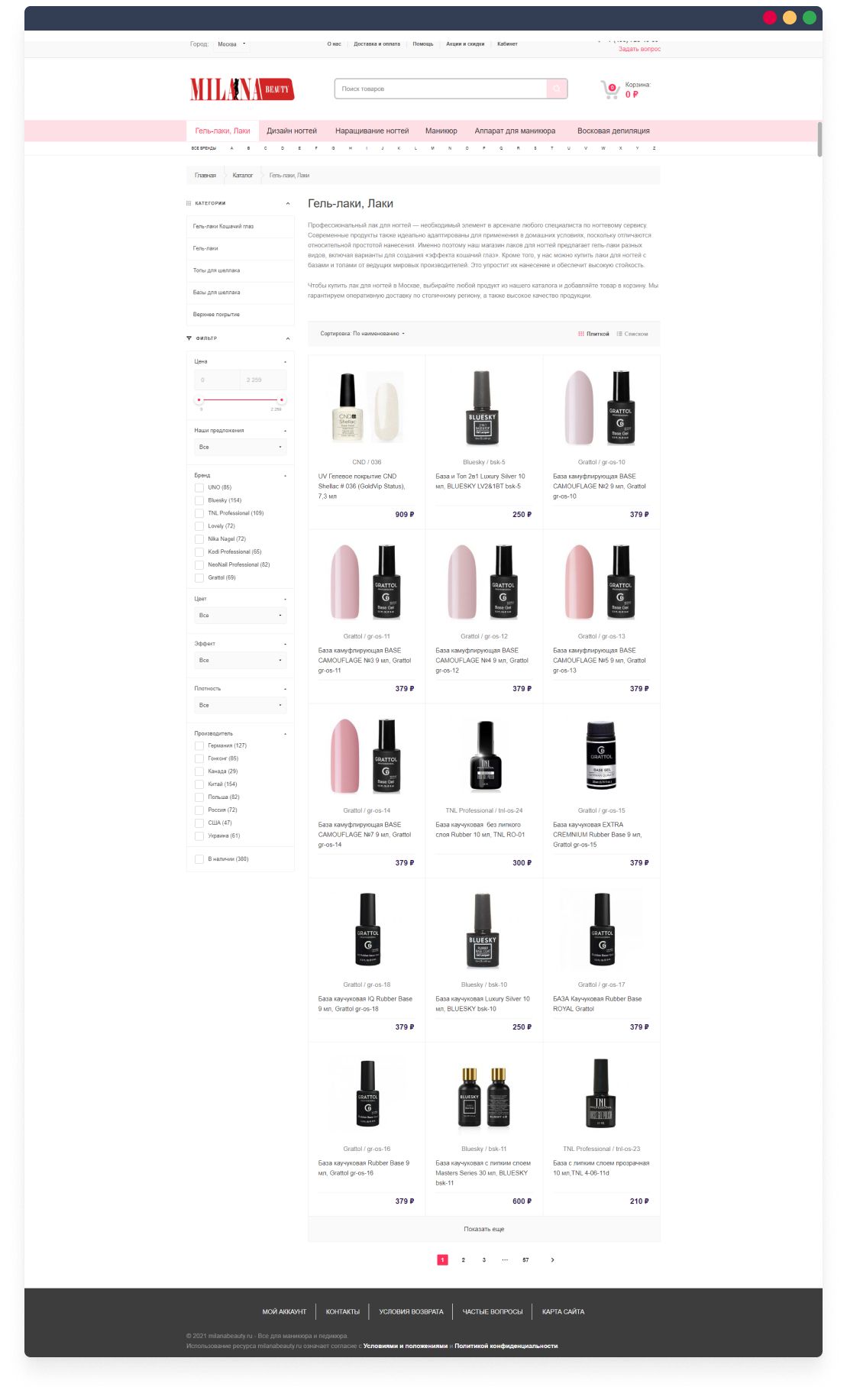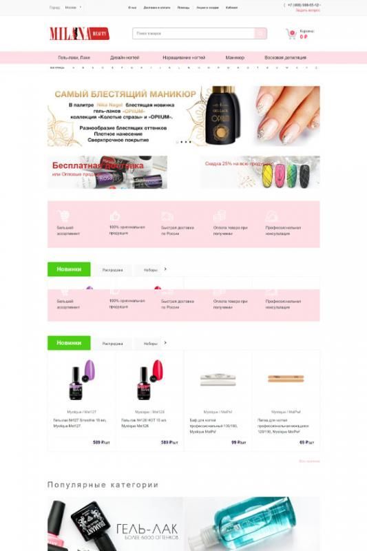 Милана Бьюти – это интернет-магазин профессиональных товаров для салонного ухода за руками. В магазине представлен широкий ассортимент гель-лаков, инструментов и материалов для дизайна ногтей, а также все для наращивания и маникюра. Магазин имеет более 5000 пунктов выдачи заказов, предлагает различные варианты доставки и реализует товары как в розницу, так и оптом.