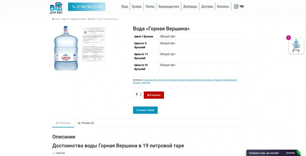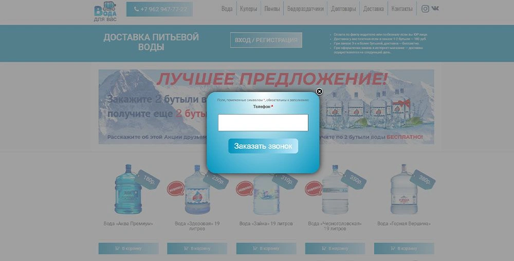 • Сайт доставки воды